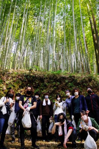 最後に竹林の前で全員集合。